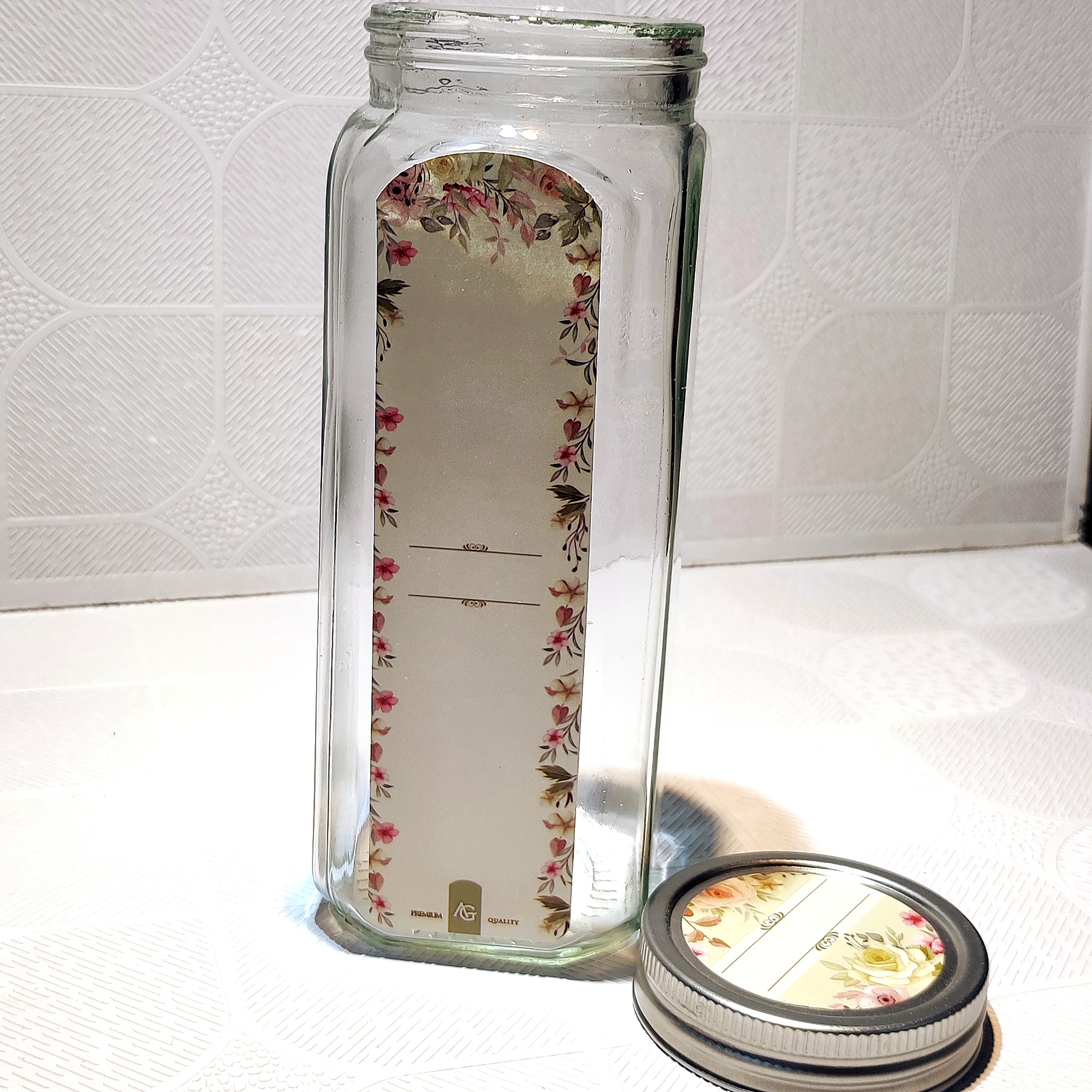 Glass grain jar with steel lid